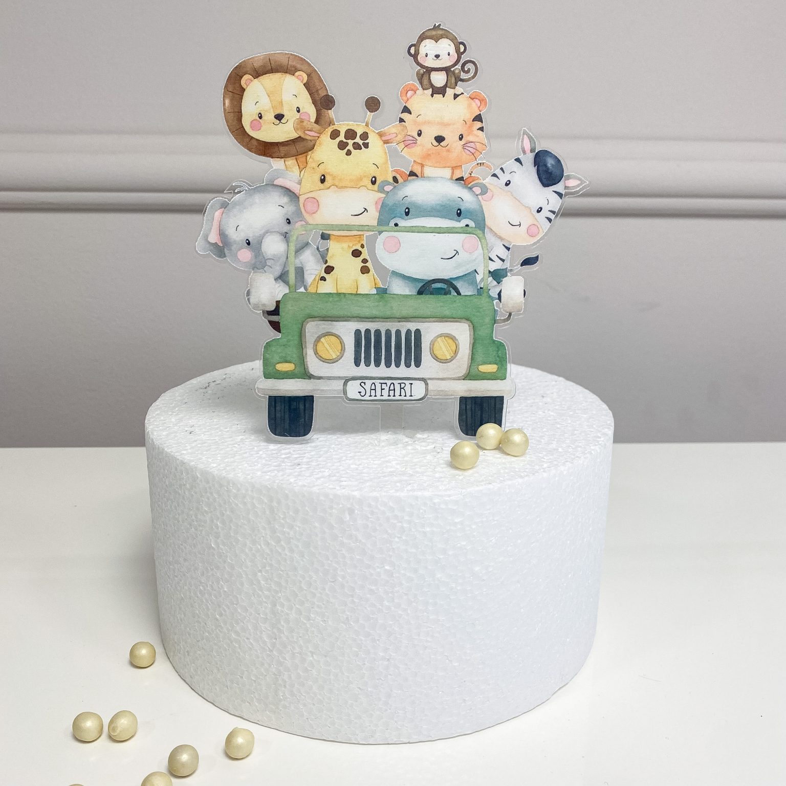 IMG_8786_jpg Published 14. siječnja 2022. at 2560 × 2560 in Cake topper print na pleksiglasu sa životinjama iz džungle u automobilu